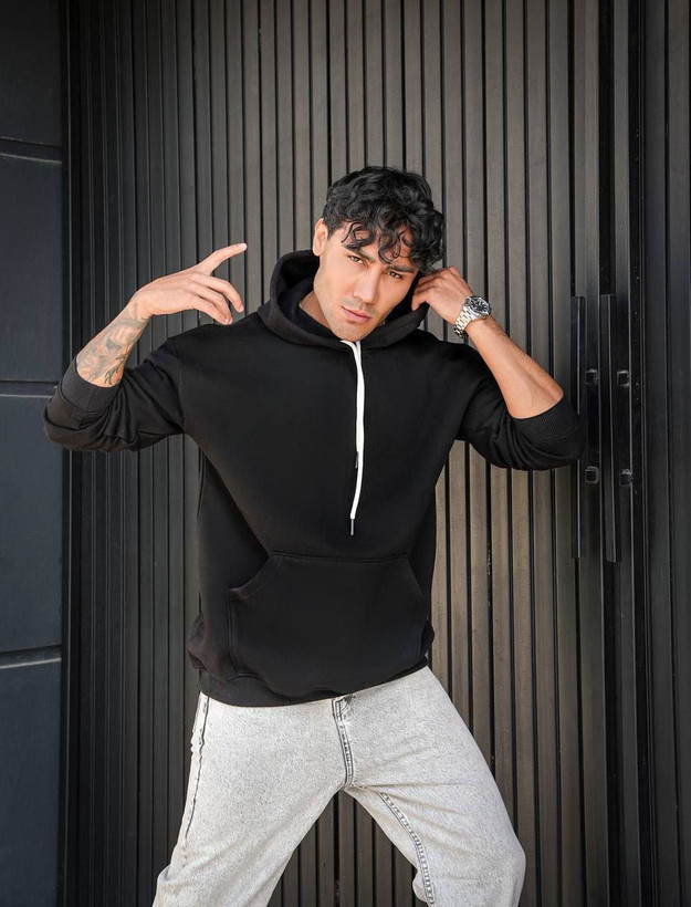 هودی بیسیک سه نخ پنبه داخل کرک مشکی